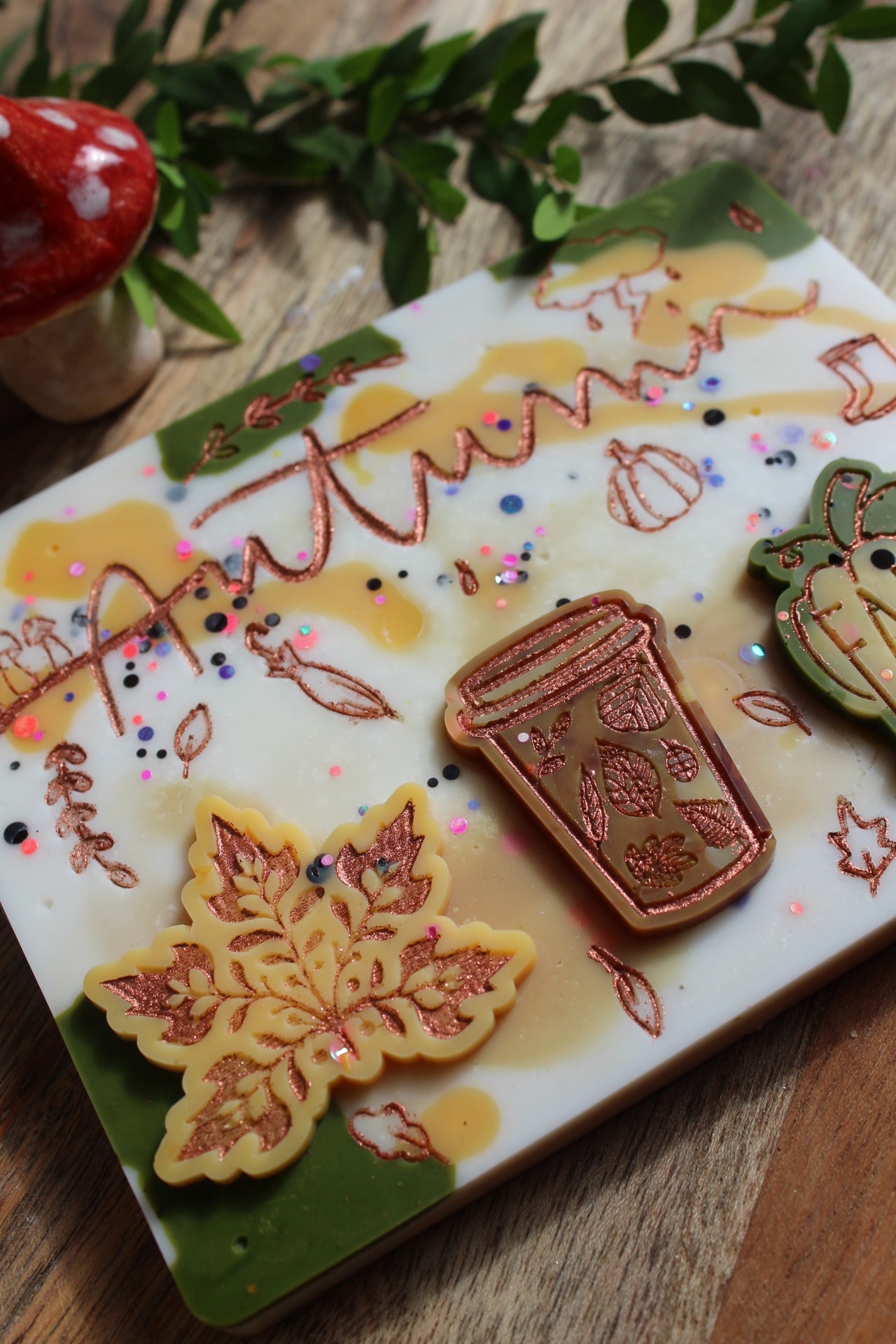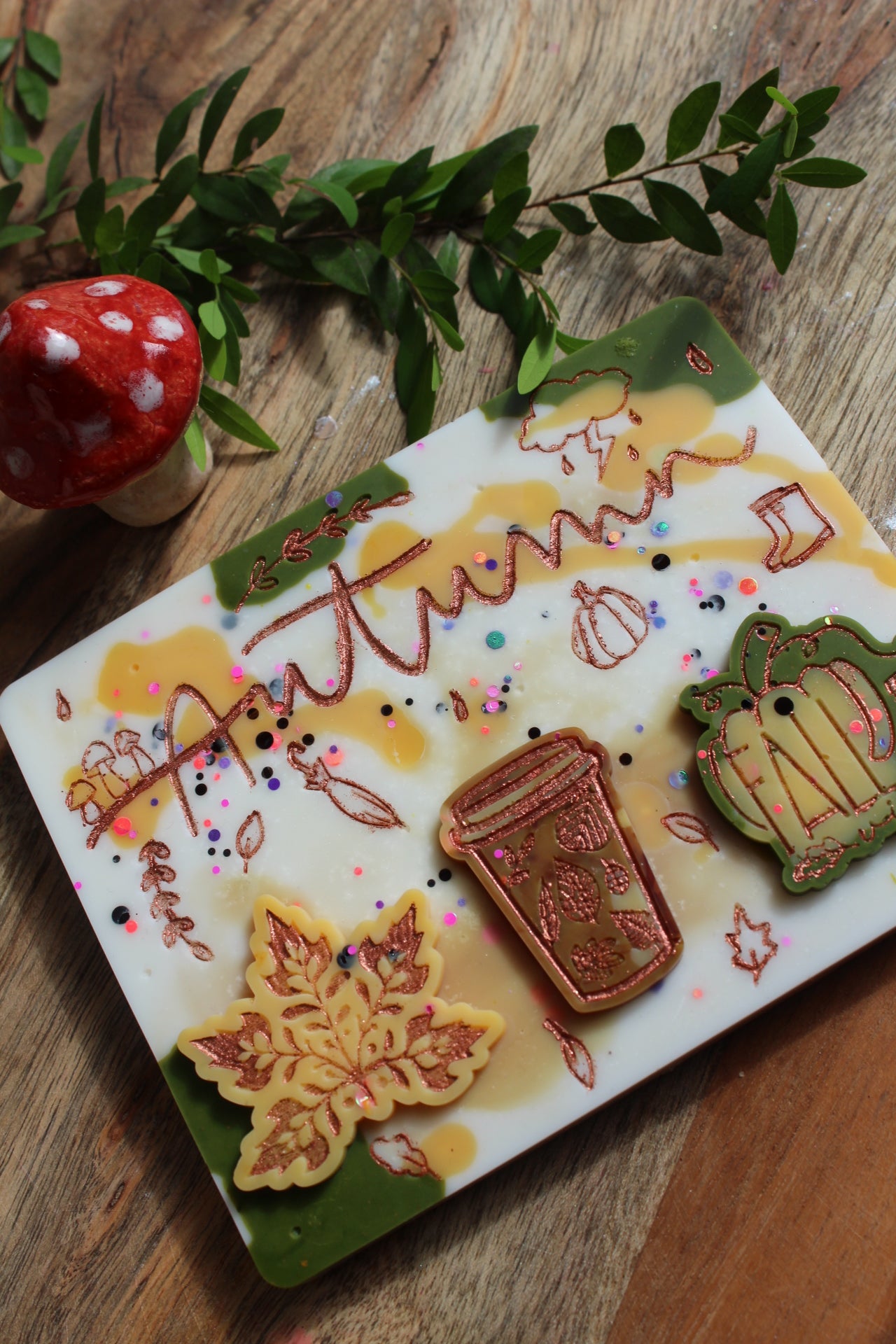 Step into a crisp autumn afternoon with this Autumn themed wax slab, scented in a refreshing blend of Strawberry and Green Apple Spritzer. Juicy, sun-ripened strawberries swirl with tart green apple and a hint of sparkling effervescence, creating a scent that’s both bright and cozy. Perfect for fall lovers who crave the freshness of an orchard and the fizzy joy of a seasonal spritz