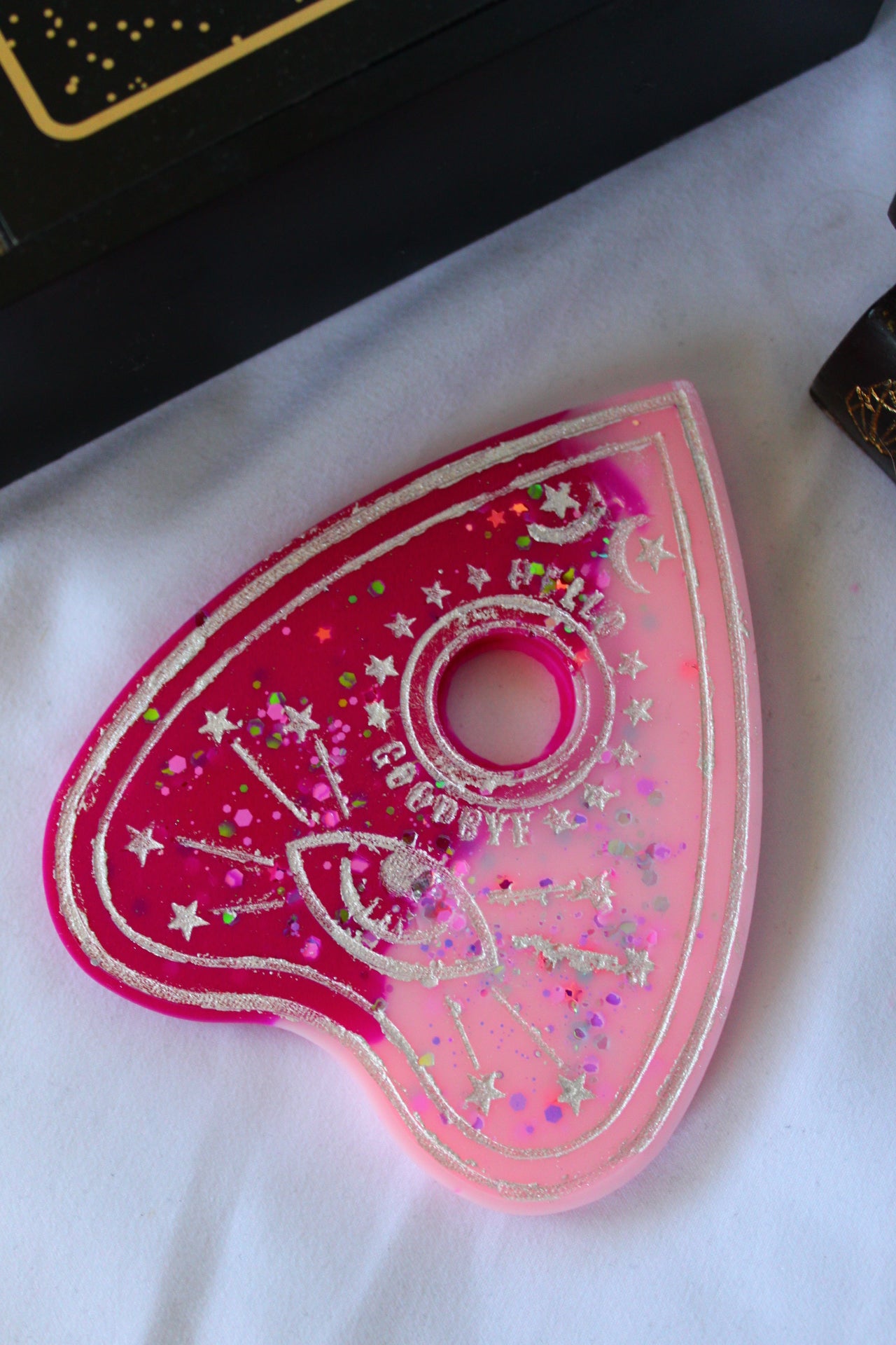 Conjure candy-coated magic with this pastel planchette melt. A spellbinding blend of buttery funfetti cake and whipped frosting swirls with almond sugar sweetness, before a fizzy pop of blue raspberry Kool-Aid awakens the spirit of playful mischief.