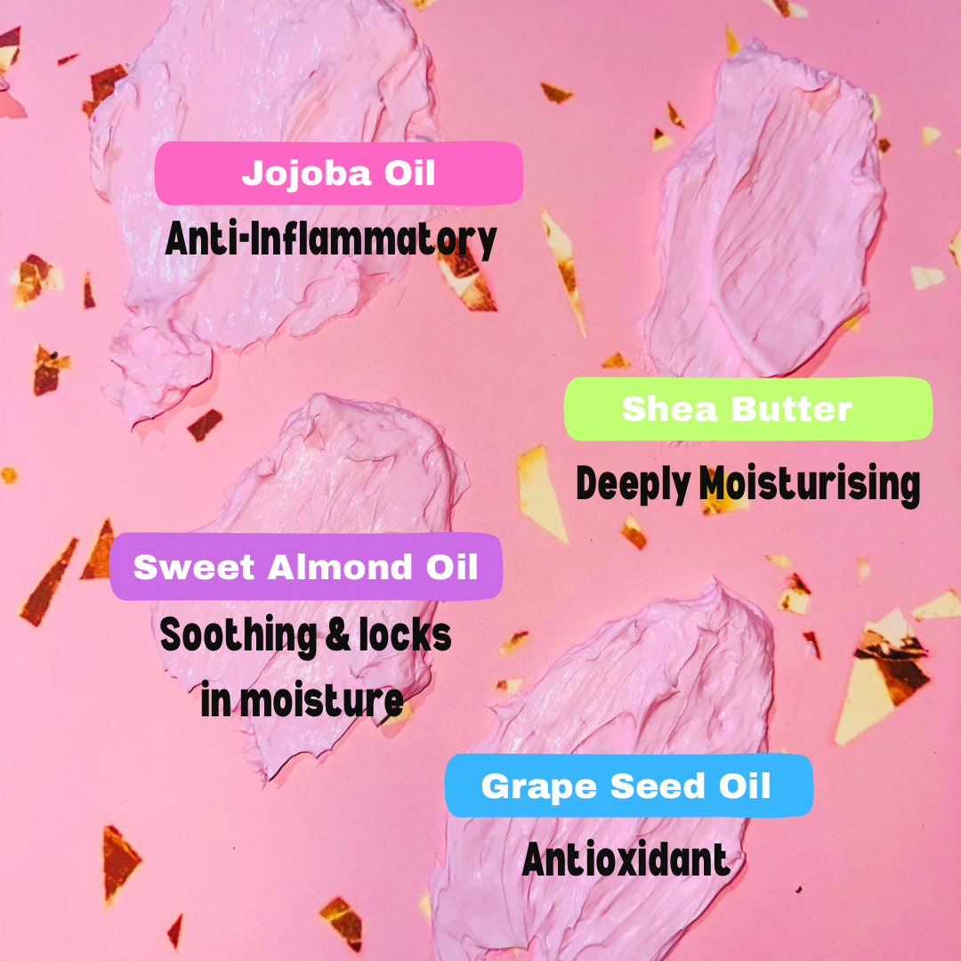 Our Whipped Body Butters are luxuriously thick and moisturising, without being heavy. Harnessing the powers of Sweet Almond Oil, Grape Seed Oil, Jojoba Oil, Shea Butter and Rice Bran Oil, this body butter is plant-derived and healthy for your skin, making it suitable for all skin types. If you’re looking for a luscious, nourishing moisturiser that looks cute and smells great, look no further!